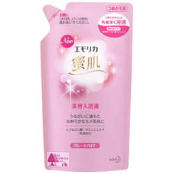 花王 エモリカ蜜肌 美容入浴液 グレースアロマ 詰替360ml優美なローズの香り8400円以上お買い上げで送料無料♪価格: 682円レビュー評価: 0.0 レビュー数:0 >>会社概要はコチラ>>お支払方法の詳細はコチラ ご発送に約4日?1週間程頂戴致します。予めご了承下さい。特徴●お風呂の中でボディケアできる美容入浴液です。●入浴中だからこそ、お湯でほぐれた肌の角層の深部まで、保湿成分※が浸透。●たっぷりとうるおいに満ちた、やわらかで、なめらかなキメ美肌に。※蜜肌成分(ヒアルロン酸・マロニエエキス)※バリア&うるおいセラミド機能成分(セラミドAP+)ビスメトキシプロピルアミドイソドコサン、セチルPGヒドロキシエチルバルミタミド●ゆったりとお湯につかると、入浴中からやわらかく、なめらかな肌を実感できます。●湯の色/乳白色 品 名エモリカ蜜肌 美容入浴液 グレース |
